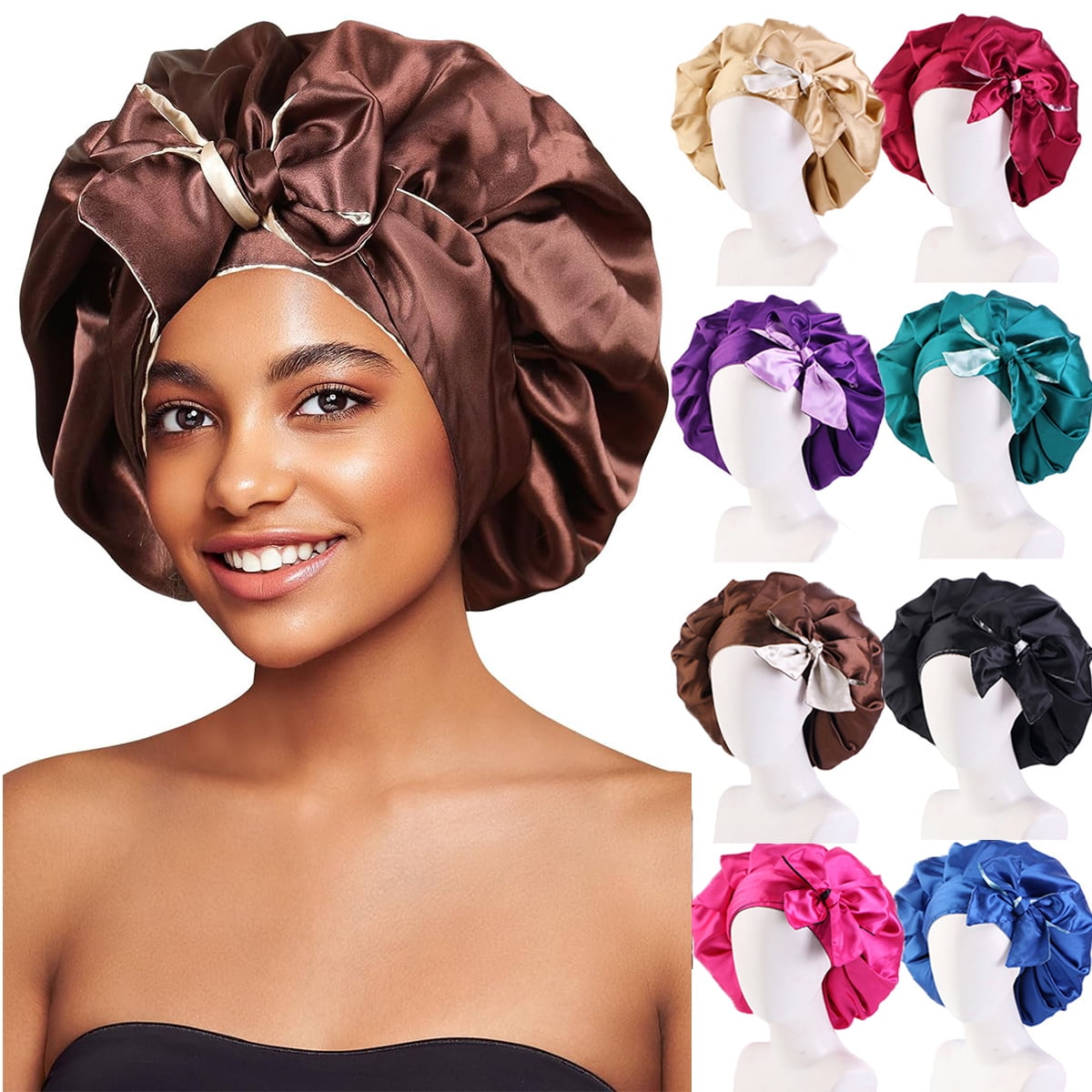 Hair Bonnets For Sleeping . Satin Silk Hair for Women Curly Hair Wrap for Sleeping Cap Reversible with While not made of actual silk satin, their polyester satin fabric comes pretty close They not only help minimize frizz but also those mid-sleep snags that can contribute to breakage
